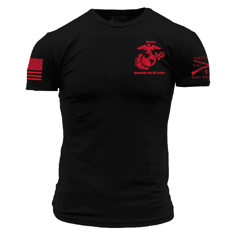 The experiences, comradery, and love for this country are bound in blood. All of the blood, sweat, and tears that so many brave men and women gave are what unify all Marines to each other. Through good and bad times, Marines have stuck to their values and defended our freedoms. Order this USMC Bound in Blood graphic t-shirt today and embrace warriorhood.