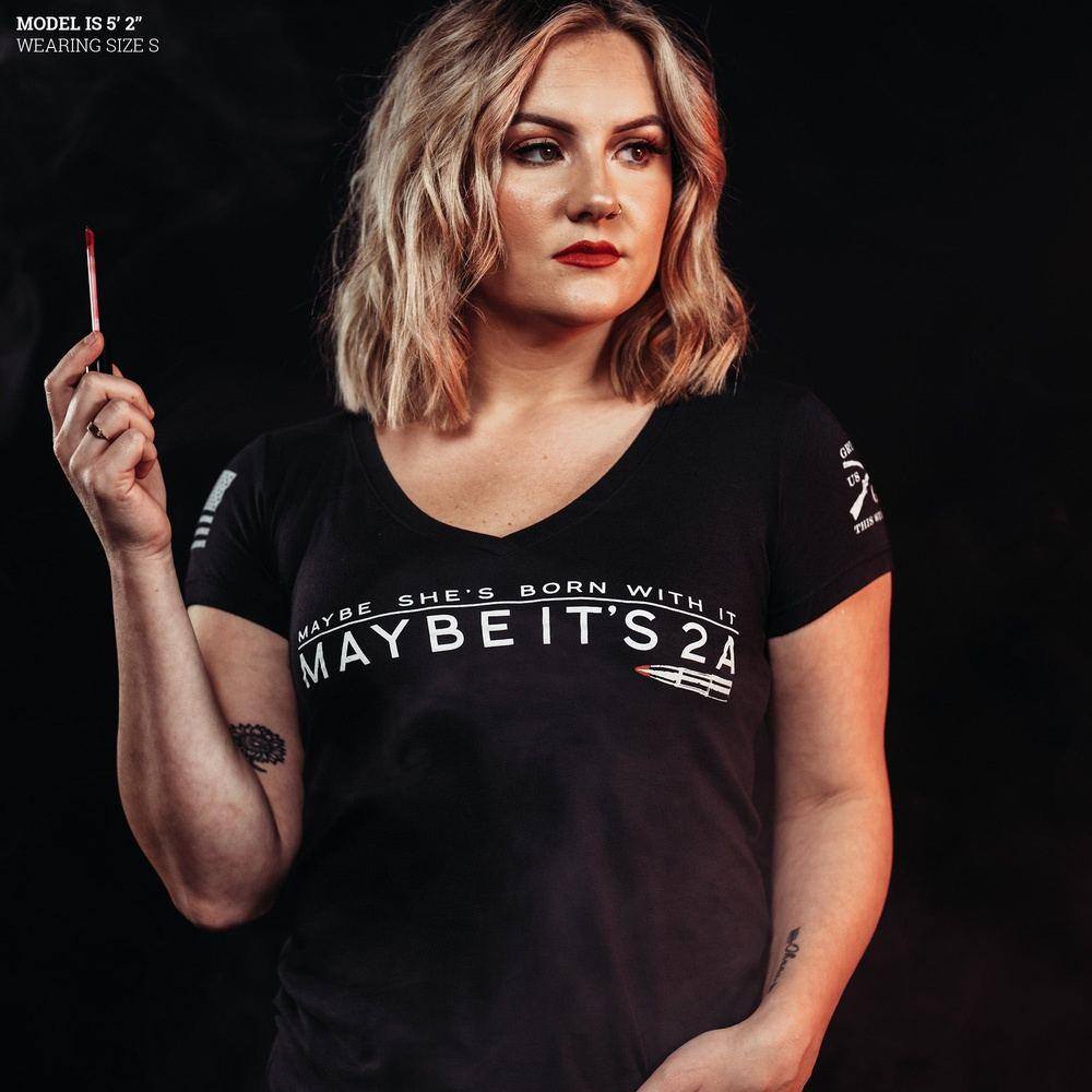 Be a badass in our women's Maybe It 2A V-neck in black. This bold and confident v-neck is perfect for any powerful woman. Its classic black color will make a statement and show off your strength.
