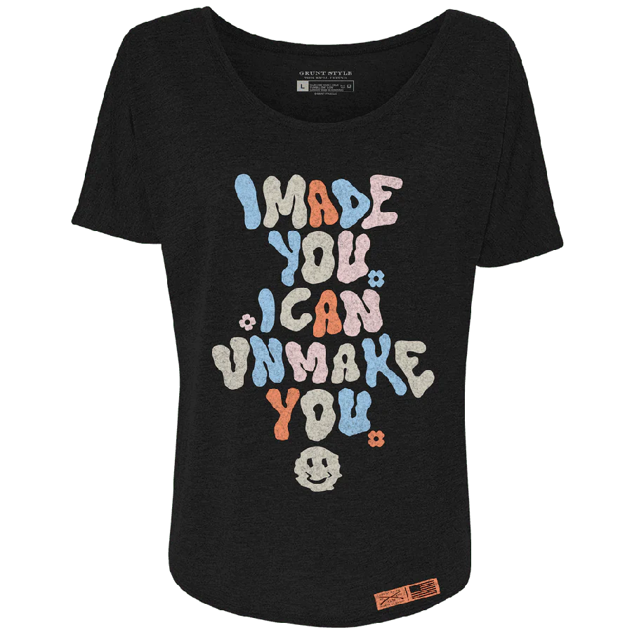 Empower the mom in your life with our Women's Unmake You Slouchy T-Shirt in Black! This tee speaks for itself: moms are powerful, and they get things done. Show your appreciation with this comfortable, slouchy shirt that will remind her that she brought you into this world and she can take you out of it!